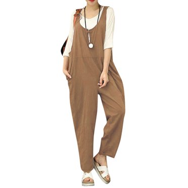Women S Jumpsuits Casual Long Rompers Wide Leg Baggy Bibs Overalls Harem Pants Plus Cotton Linen Jumpsuits Walmart Com