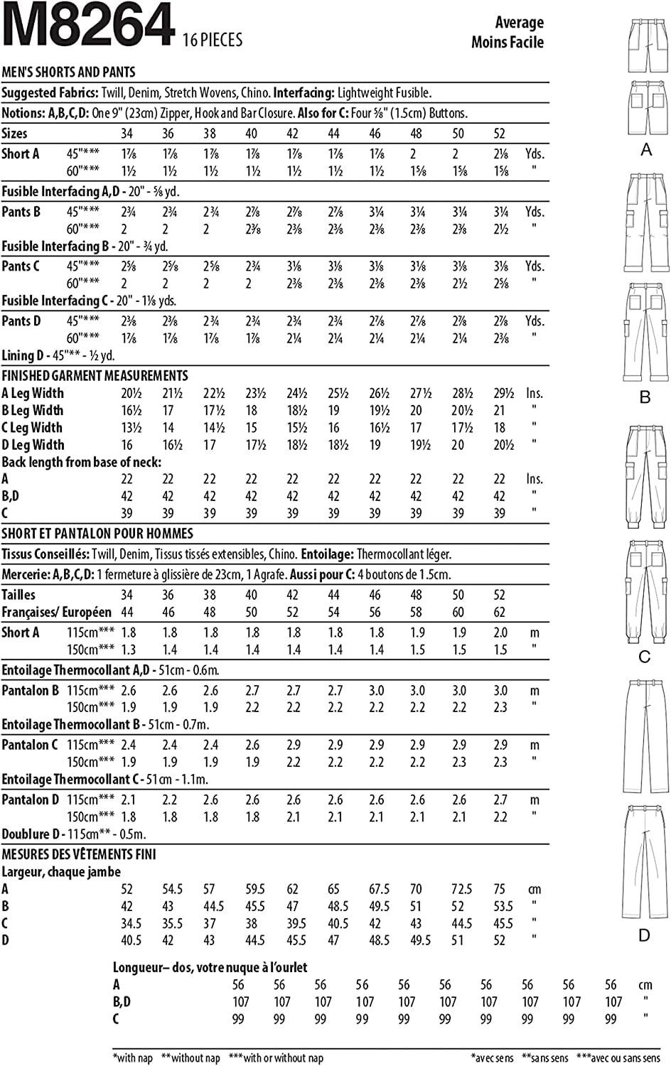 Mccall S Sewing Pattern M8264 Men S Shorts And Pants Size Aa 34 36 38 40 42 Walmart Com